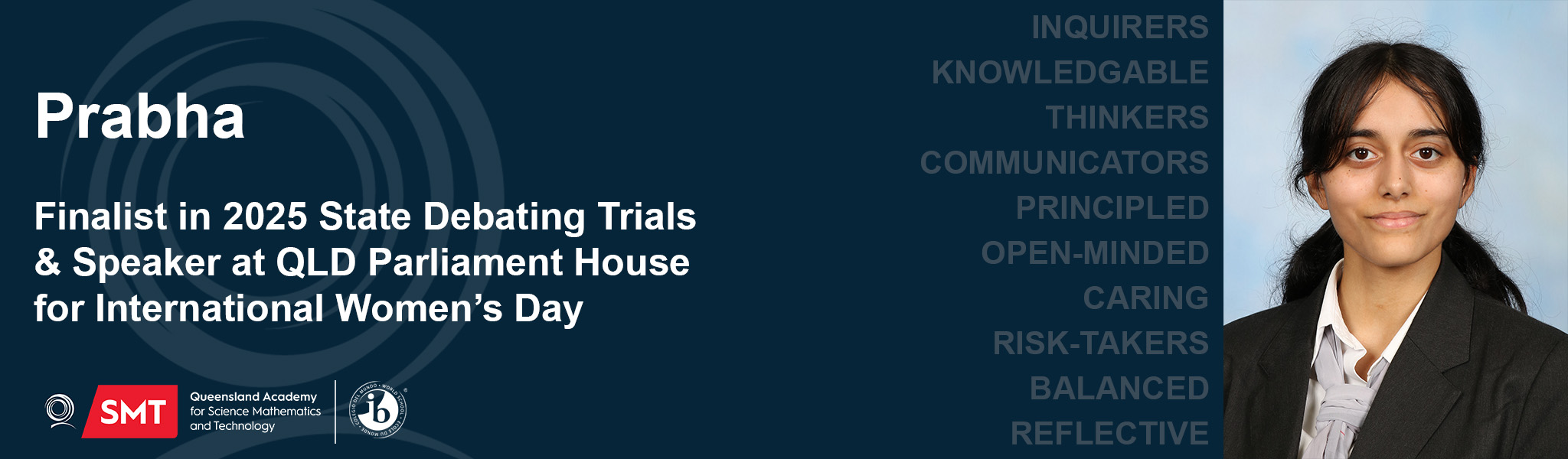 Secondly, Prabha has achieved extraordinary success in the 2025 State Debating Trials. Out of over 190 triallists, she was selected as one of the Top 12 finalists. As part of this recognition, Prabha was invited to speak at a special show debate in Queensland Parliament House, commemorating International Women's Day. What a remarkable honour, congratulations Prabha!